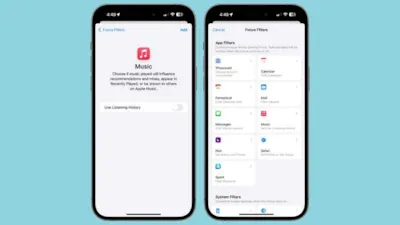 همچنین پس از انتشار iOS 17.2، با فعالکردن حالت فوکوس در اپل موزیک، موزیکهایی که گوش میدهید، در تاریخچهی موزیکها و موزیکهای پیشنهادی قرار نمیگیرند.