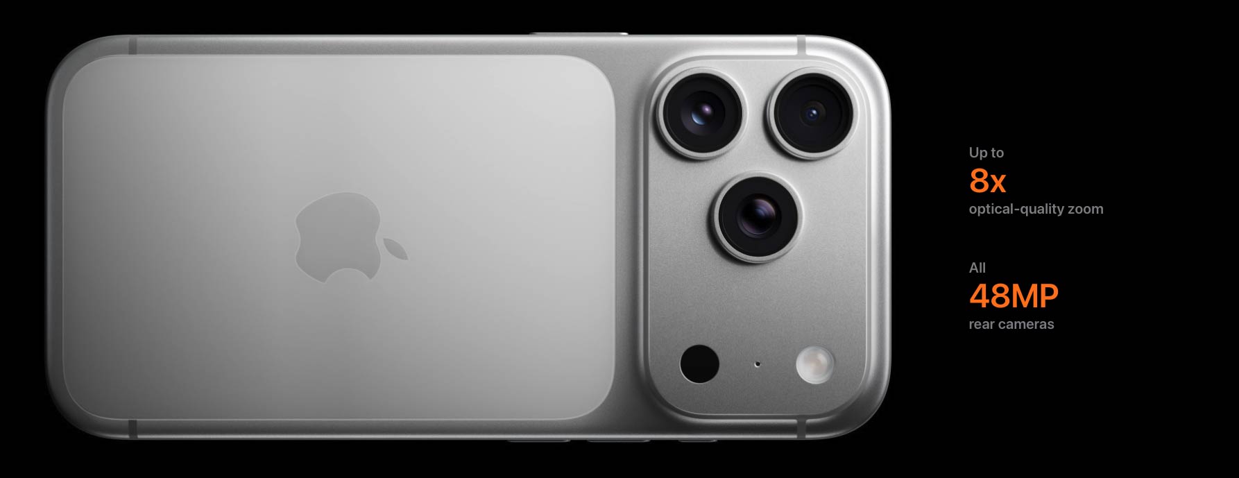 iPhone 17 Pro همچنان از همان طراحی ظاهری دوربینهای سهگانه با چینش مثلثی بهره میبرد؛ اما در این بخش هم تغییرات قابل توجهی ایجاد شده است. هر سه دوربین این گوشی هوشمند به سنسور ۴۸ مگاپیکسلی مجهز شدند که نسبت به نسل قبلی عملکرد قدرتمندتری را به نمایش میگذارند. دوربینهای آیفون ۱۷ پرو با همان چینش مثلثی در گوشه سمت چپ ماژول دوربین قرار گرفتهاند. دوربینهای این دستگاه در تصاویر پرتره به خوبی سوژه اصلی را از پس زمینه جدا میکنند و در محیطهای کم نور تصاویری با نور مناسب و بدون نویز را به ثبت میرسانند. دوربینهای این دستگاه امکان تولید محتوا حرفهای را فراهم میکنند.