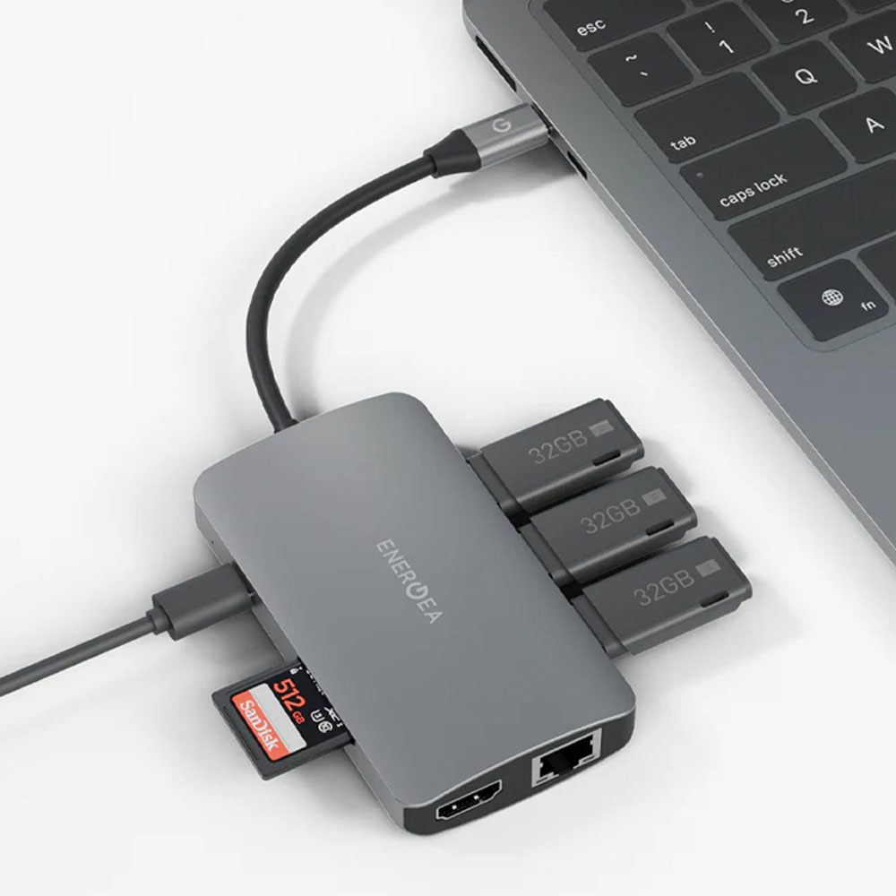 هاب شارژر ۸ در ۱ انرژیا مدل Energea AluHub HD PRO 2 USB Type-C با سرعت داده‌ ی بسیار بالا و با پشتیبانی از استاندارد USB 3.0 بهترین گزینه برای انتقال داده‌ها و عکس‌ها و فیلم‌های شما است.