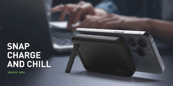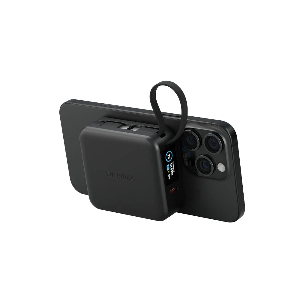 پاور بانک 4 در 1 انرژیا 10000 میلی آمپر 20 وات مدل Magpac Mini Plus دارای یک کابل تایپ c است که توانایی جمع شدن در خود دستگاه را دارد همچنین شما می‌توانید در هنگام اتصال این پاور بانک به تلفن همراه خود از آن به عنوان یک استند برای قرار دادن گوشی خود بر روی میز استفاده کنید.